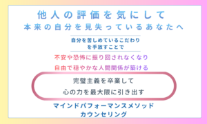 ✅人間関係がストレスで、飲み会や集まりが苦痛になっている ✅「ちゃんとしなきゃ」「こうあるべき」に縛られて、いつも心が休まらない ✅他人の言動や評価が気になり、本当の自分を出せない ✅周りに合わせすぎて、気づくとどっと疲れている ✅頑張っているのに、なぜか満たされない感覚が続いている ✅人に嫌われないように気を遣いすぎて、距離感がわからなくなっている ✅完璧にやろうとするほど、失敗やミスが怖くなる ✅人前で緊張しやすく、不安や恐怖に振り回されてしまう ✅「ちゃんとした自分」と「本当の自分」のギャップに苦しくなる ✅「放置するとどうなる?」このまま一生、我慢しながら人間関係を続けるのかと思うと不安になる